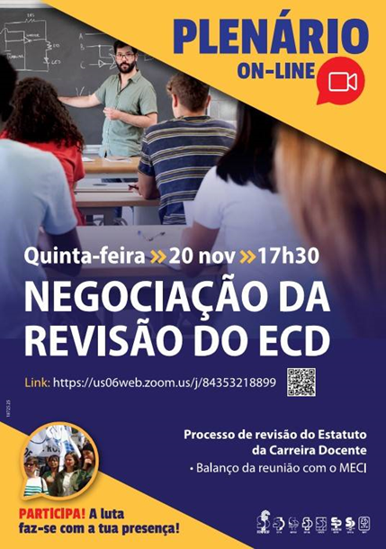 Tal como a FENPROF se tinha comprometido, sempre que houver uma reunião de negociação com o MECI sobre a revisão do ECD, será feita uma reunião on-line para dar a conhecer o processo negocial, as propostas, as contrapropostas, as dificuldades do processo e as propostas de ação. Vê aqui como aceder.