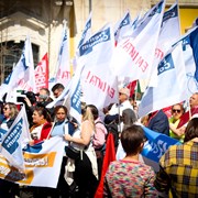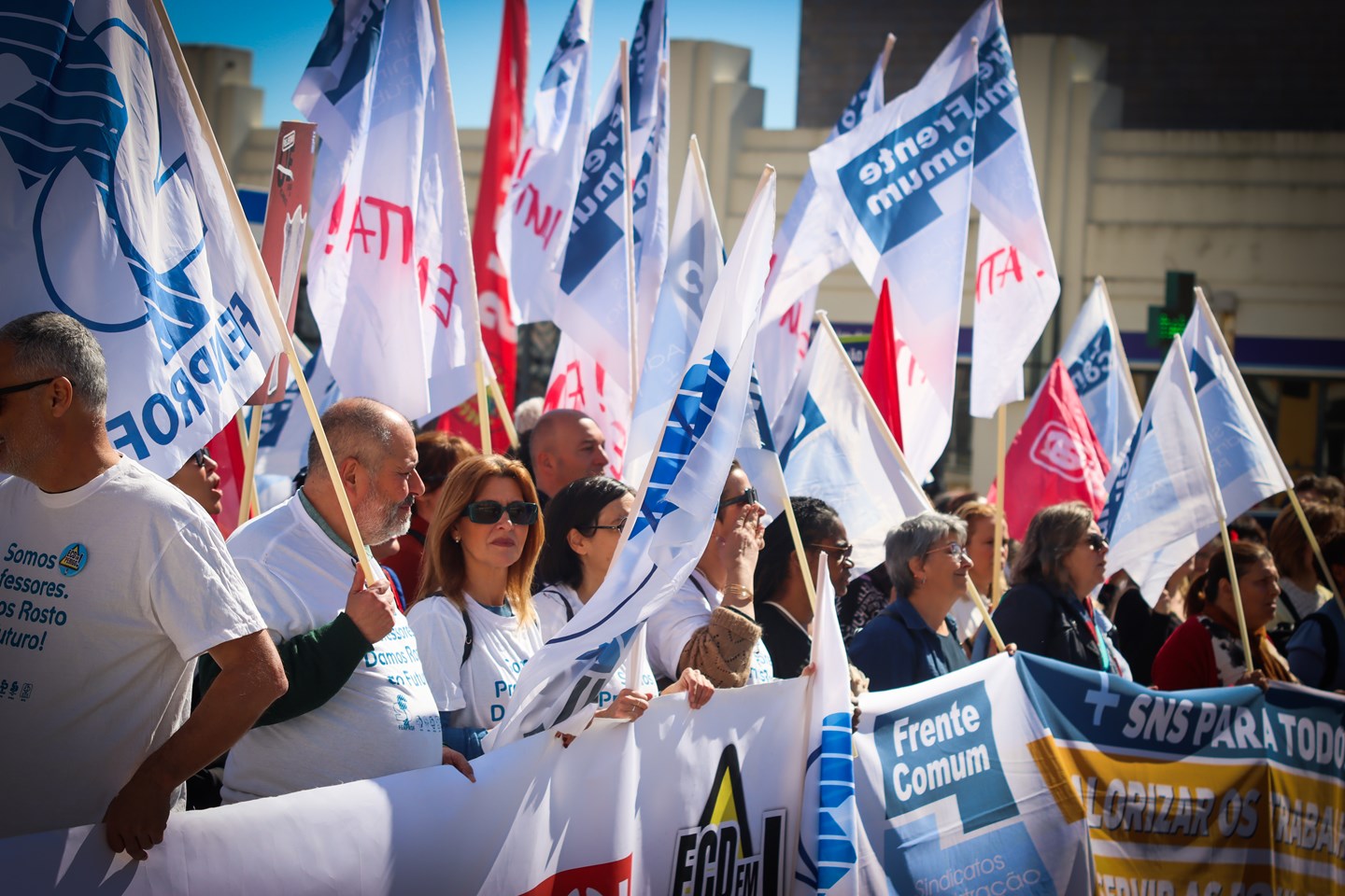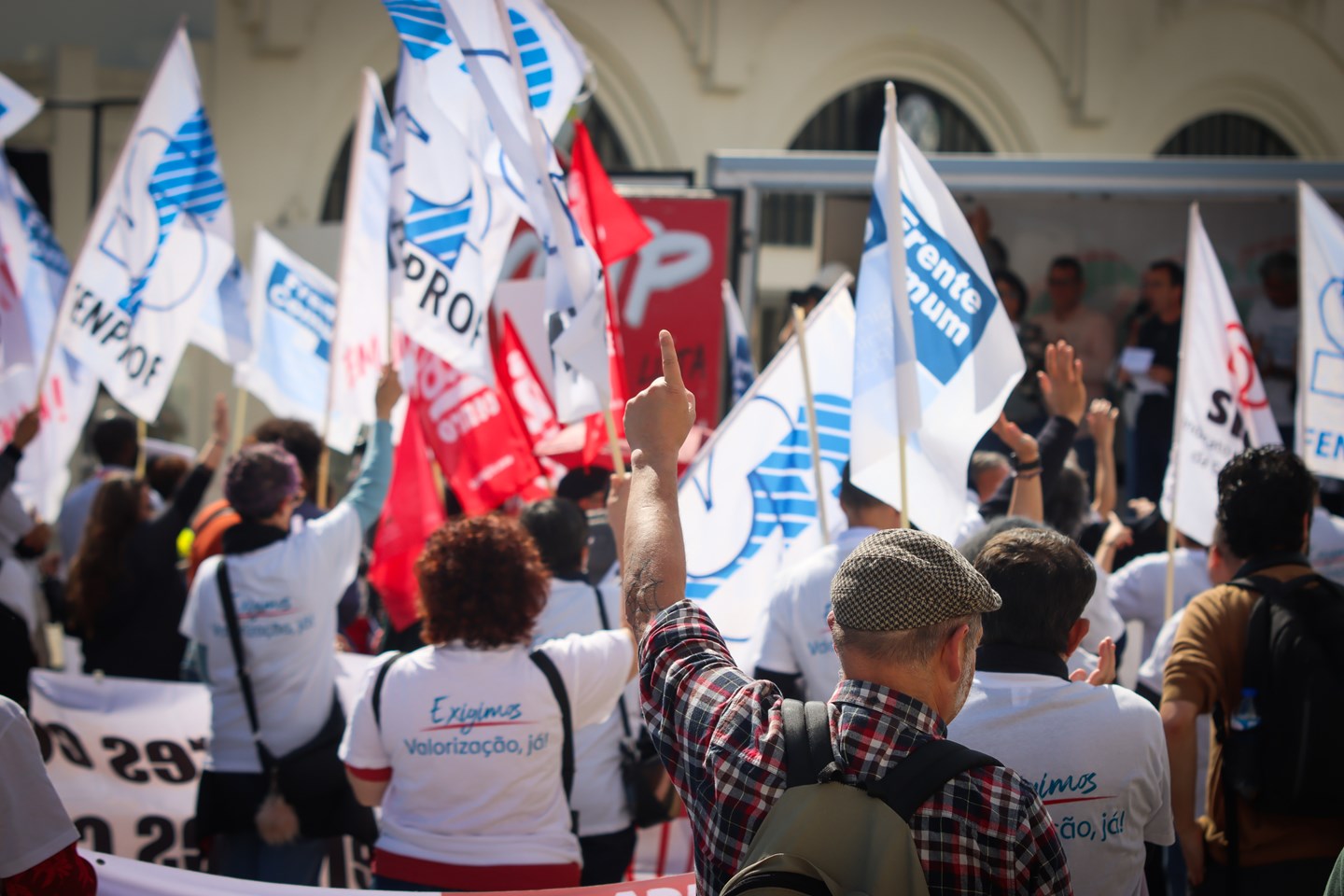 Centenas de professores, educadores e investigadores participaram esta sexta-feira, 13 de março, na concentração “Administração Pública em Luta”, realizada na Praça da Figueira em direção ao Ministério das Finanças, em Lisboa. A iniciativa reuniu trabalhadores de vários sectores da Administração Pública para manifestar preocupação com as políticas do Governo relativamente aos serviços públicos e funções sociais do Estado.