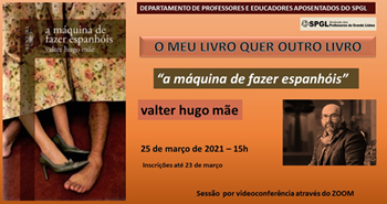 Vamos ocupar o nosso tempo, neste tempo que nos sobra, para falarmos sobre o livro “A máquina de fazer espanhóis” e do seu autor Valter Hugo Mãe, no âmbito do projeto “O MEU LIVRO QUER OUTRO LIVRO”, numa sessão por videoconferência.