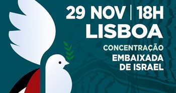 Assinalando o Dia Internacional de Solidariedade com o Povo Palestiniano, e sob o mote «Palestina Livre! Paz no Médio Oriente!», no dia 29 de novembro, às 18 horas, CGTP-IN, CPPC, MPPM e Projecto Ruído convocam uma concentraçao em frente à Embaixada de Israel, em Lisboa. Professores, educadores e investigadores, integrando a comitiva do Sindicato dos Professores da Grande Lisboa, uma vez estarão presentes em defesa da Paz. Junta-te a nós!