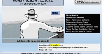 O Departamento de Aposentados do SPGL promove uma ida ao Teatro Nacional D. Maria II no próximo dia 14 de Fevereiro para assistirmos à peça “Subitamente no Verão passado” na sala Estúdio, às 21.30h. Ler mais