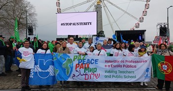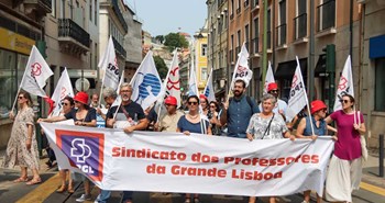 Desde segunda-feira, 11 de setembro de 2023, sindicatos da FENPROF em convergência com 8 organizações sindicais, estão a afixar em escolas de todo o país pendões que afirmam: Escola Pública. A Luta continua! Faltam professores. É urgente valorizar a profissão.