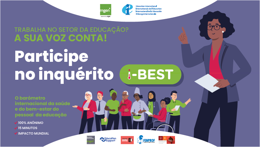 Profissionais da educação, precisamos da vossa opinião! Participem no maior inquérito mundial sobre a saúde e o bem-estar dos trabalhadores e trabalhadoras da educação.