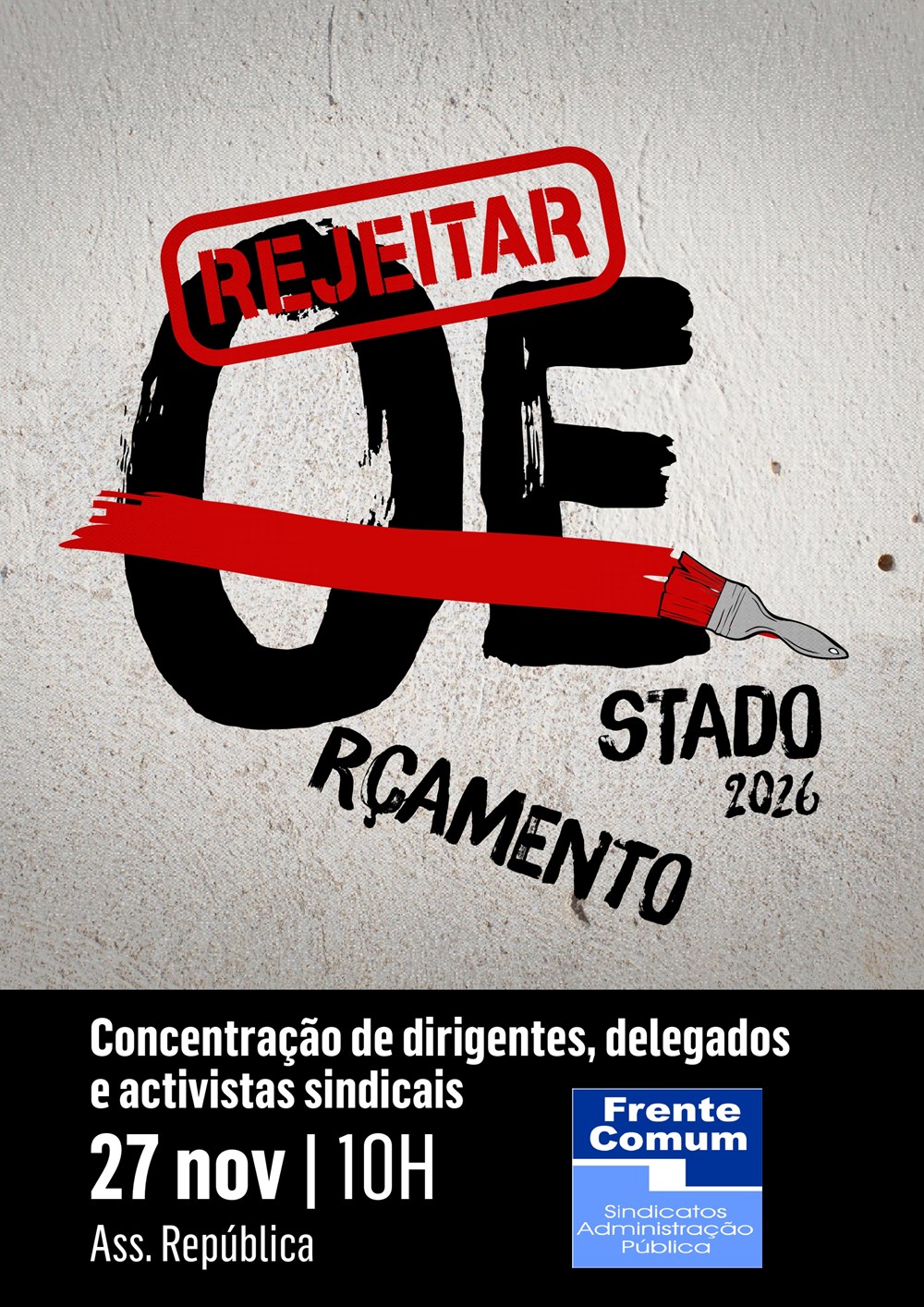 No próximo dia 27 de novembro, às 10h00, em frente à Assembleia da República, a Frente Comum de Sindicatos da Administração Pública vai realizar uma Concentração de Ativistas, Delegados e Dirigentes Sindicais.