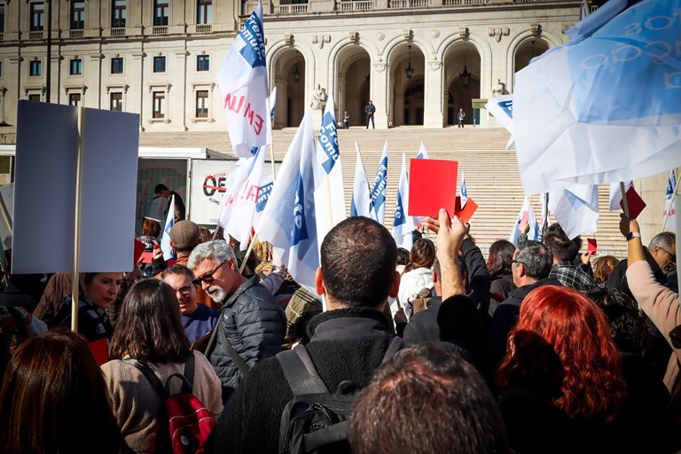 No dia 27 de novembro, em frente à Assembleia da República, a Frente Comum de Sindicatos da Administração Pública realizou uma Concentração de Ativistas, Delegados e Dirigentes Sindicais.