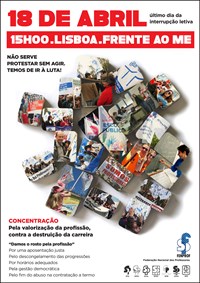 Às 15 horas, junto ao Ministério da Educação, na Av. 5 de Outubro, os professores e educadores vão concentrar-se e depois desfilar até à residência oficial do primeiro ministro, mostrando a sua força para exigirem que sejam dados passos decisivos para a concretização dos grandes objetivos reivindicativos: o desbloqueamento das progressões no respeito pelos Estatutos de Carreira em todos os níveis de ensino, regras de aposentação adequadas à profissão docente, gestão democrática das escolas, horários de trabalho que nos permitam condições dignas para o exercício da nossa profissão.