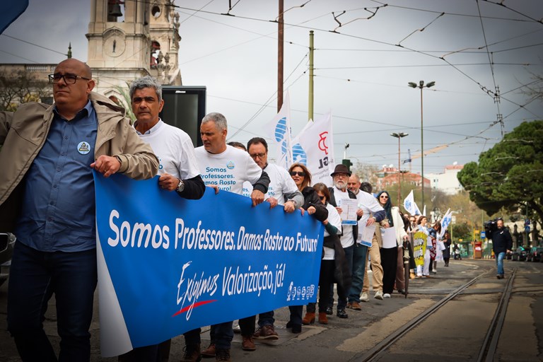 Na Basílica da Estrela, os dois secretários-gerais da FENPROF, José Feliciano Costa e Francisco Gonçalves, deram o "tiro de partida" no percurso até à residência ofical do primeiro-ministro, recordando os motivos deste cordão humano.