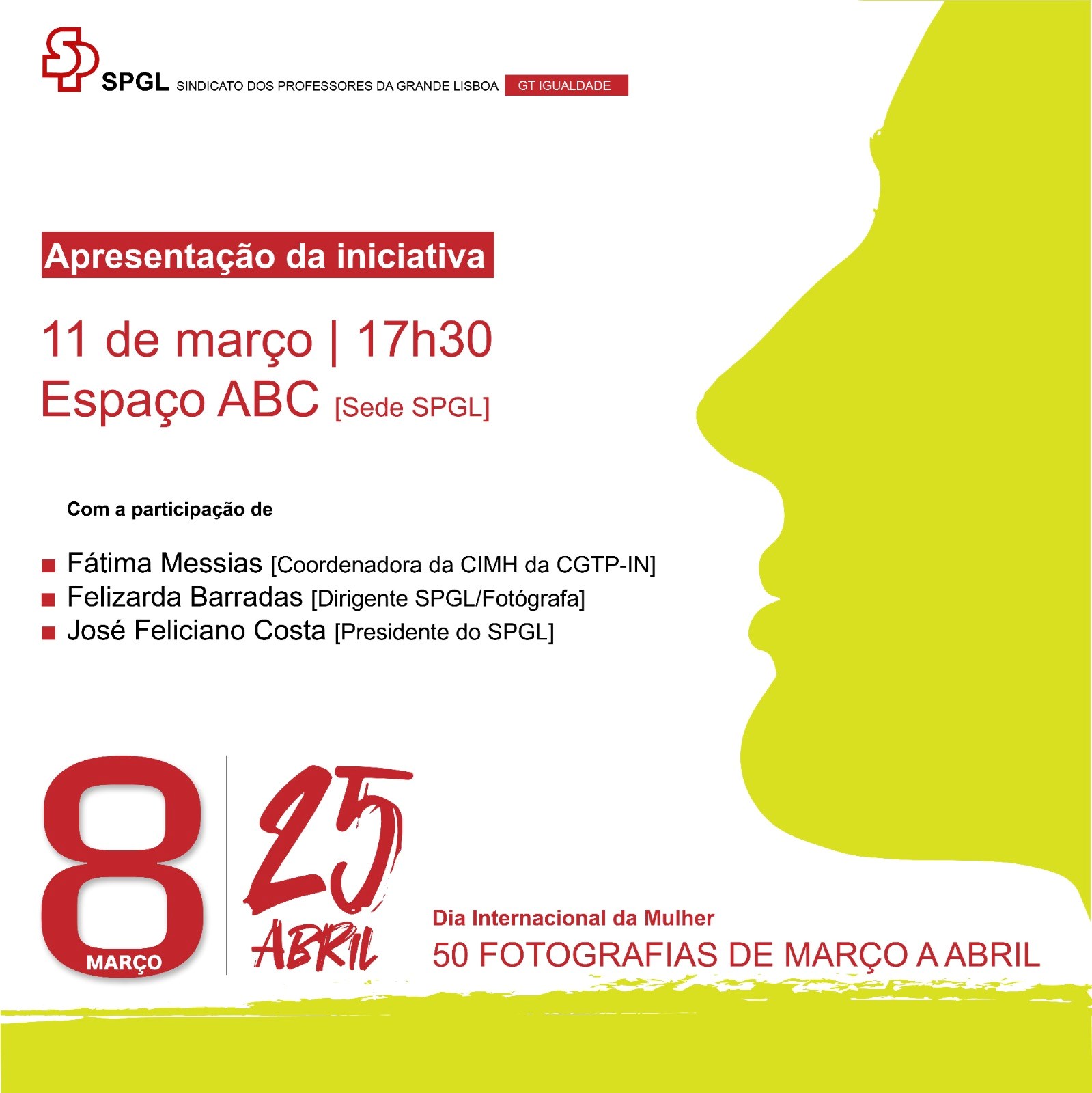 A iniciativa 50 fotografias de março a abril, promovida pelo GT da Igualdade do SPGL, e cuja apresentação púiblica terá lugar na próxima segunda-feira, 11 de março, às 17h30, no Espaço ABC (Sede SPGL), tem como objetivo dar visibilidade à luta das mulheres em defesa dos direitos de Abril. Apresentamos a primeira