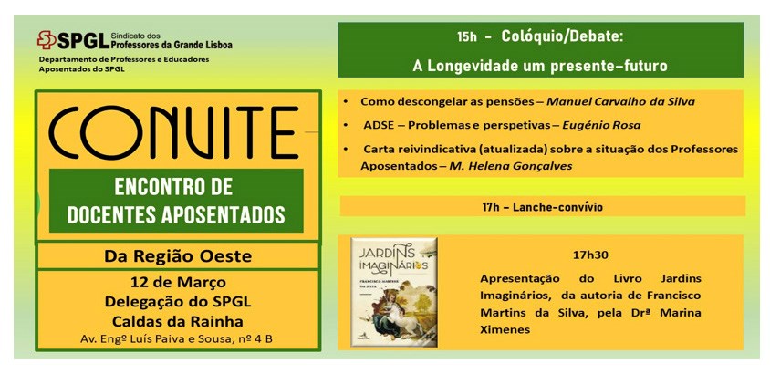 Encontro de Docentes Aposentados da Região Oeste - 12 de março, quinta feira, na Delegação do SPGL de Caldas da Rainha