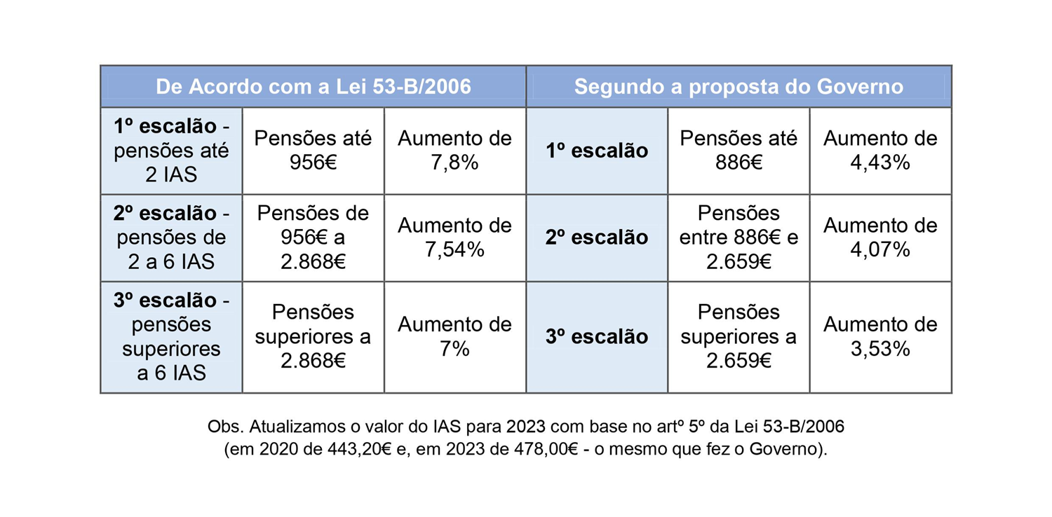 Aplicando as disposições da Lei nº 53-B/2006 e admitindo uma inflação anual de 7% em 2022 (como António Costa afirmou em declarações à Comunicação Social), teríamos as seguintes realidades: