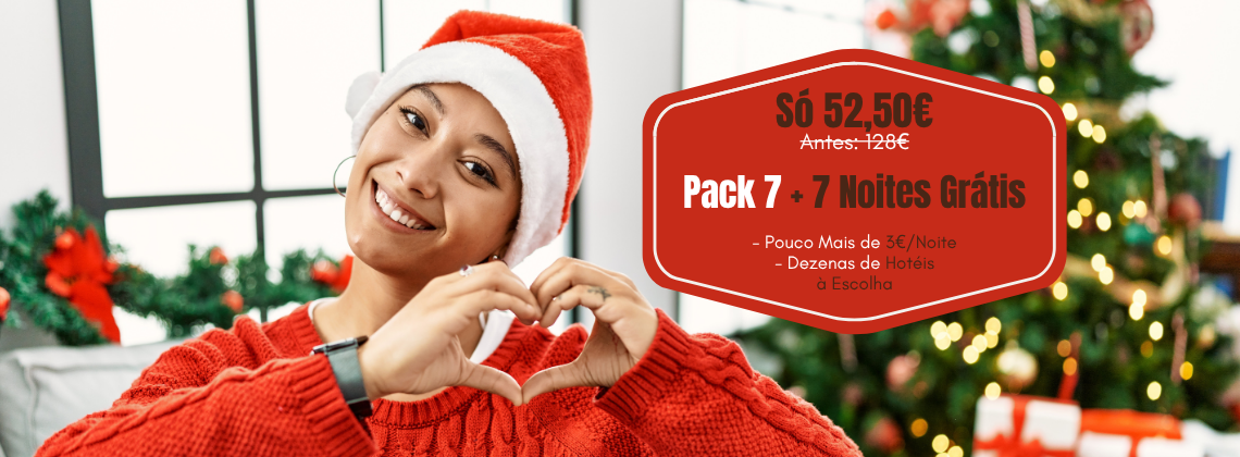 "Campanha de Natal - Pack 7+7 noites grátis de alojamento, 2 pessoas, por apenas 52,50€ pouco mais 3€/noite em Portugal e em Espanha" - Saiba mais aqui
