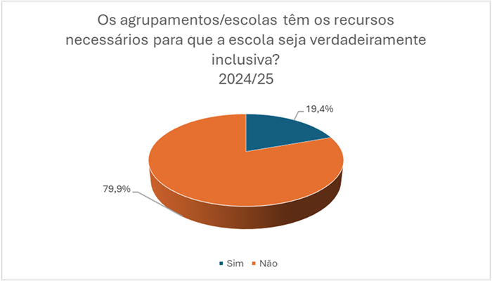 Oitenta por cento dos 132 Agrupamentos de Escolas, AE, refere não ter condições para garantir uma educação verdadeiramente inclusiva e 23% refere ter turmas maiores e com mais alunos com Necessidades Específicas, NE, do que o previsto por lei. Uma situação que põe em causa a falta de acompanhamento adequado a muitos dos alunos, nomeadamente com necessidades específicas graves.