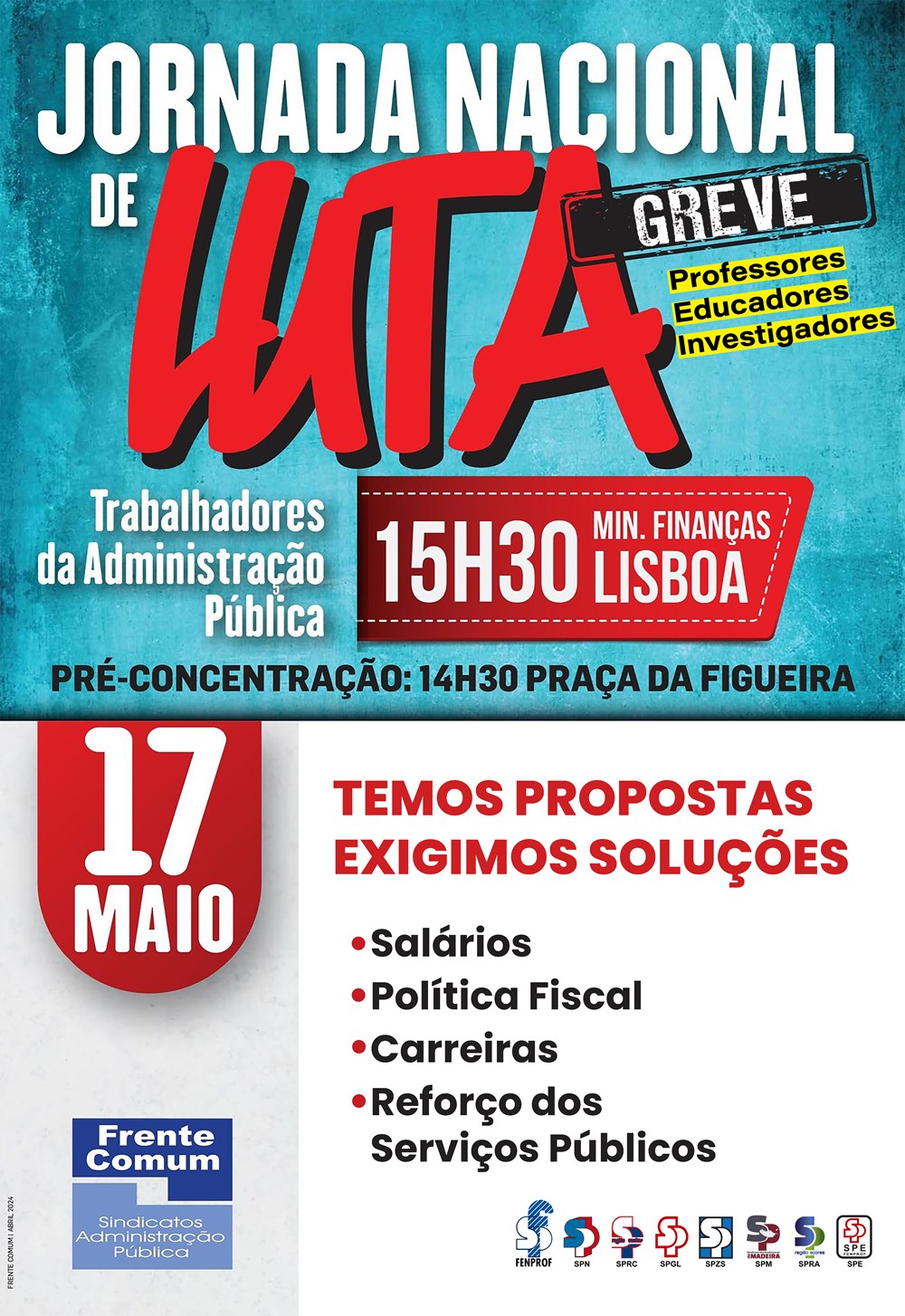 Os trabalhadores da Administração Pública estarão em luta em 17 de maio. Este dia de luta em defesa do aumento dos salários, de uma política fiscal justa, da valorização das carreiras e, também, da eliminação das quotas na avaliação de desempenho, bem como em defesa e pelo reforço dos serviços públicos, compromete os docentes e os investigadores.