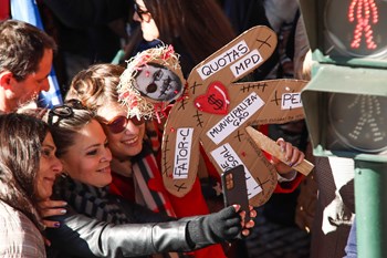 A FENPROF realizou hoje uma concentração em frente ao Ministério da Educação que contou a presença de largas centenas de professores. Este primeiro dia do 2º período letivo ficou marcado com uma grande contestação às políticas da educação. Foi entregue um abaixo assinado com mais de 45 mil assinaturas, os professores contestam a pretensão do Ministério da Educação de alteração do regime de concursos. Com este abaixo - assinado os professores dizem não à contratação direta por escola e outras entidades locais e reafirma que a contratação e ingresso nos quadros devem respeitar a graduação profissional.