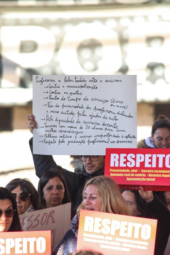 Professores, de todo o país, presentes nesta concentração para além da contestação à alteração do modelo de concursos reivindicam um calendário negocial para resolver os problemas da Educação que passam pela valorização da carreira, aumentos salarias, o fim das quotas que impedem a progressão na carreira, os horários de trabalho sobrecarregados, alteração do modelo de gestão e o fim da municipalização, entre outras.