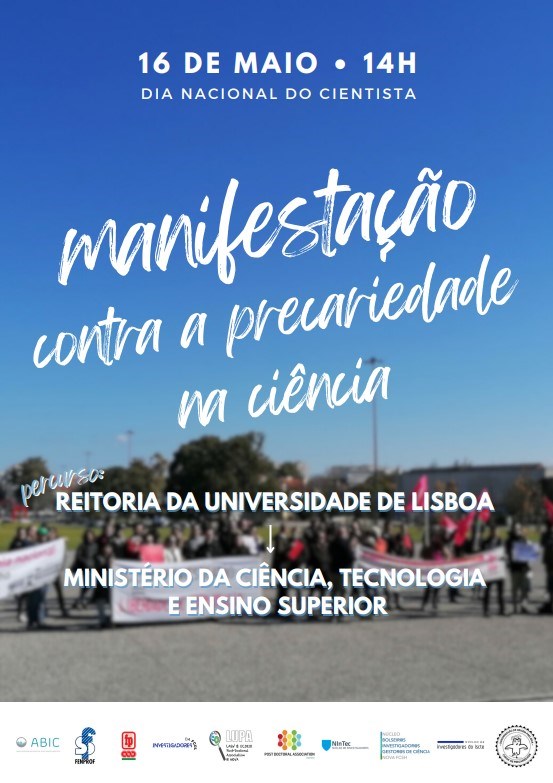 Lisboa, 3 de maio de 2023 - A Associação dos Bolseiros de Investigação Científica (ABIC), a Federação Nacional dos Professores (FENPROF), a Federação Nacional dos Sindicatos dos Trabalhadores em Funções Públicas e Sociais (FNSTFPS), em conjunto com os Investigadores da FCUL, a LUPA - LAQV & UCIBIO Postdoctoral Association, a ITQB Post Doctoral Association, o Núcleo de Investigadores do Instituto Superior Técnico (NInTec), o Núcleo de Bolseir@s, Investigador@s e Gestor@s de Ciência da NOVA FCSH, o Núcleo de Investigadores do ISCTE e a Rede de Investigadores Contra a Precariedade Científica, convocam todos os trabalhadores científicos a comparecer, no dia 16 de maio, pelas 14 horas, em frente à Reitoria da Universidade de Lisboa, para uma manifestação com destino ao Ministério da Ciência, Tecnologia e Ensino Superior.