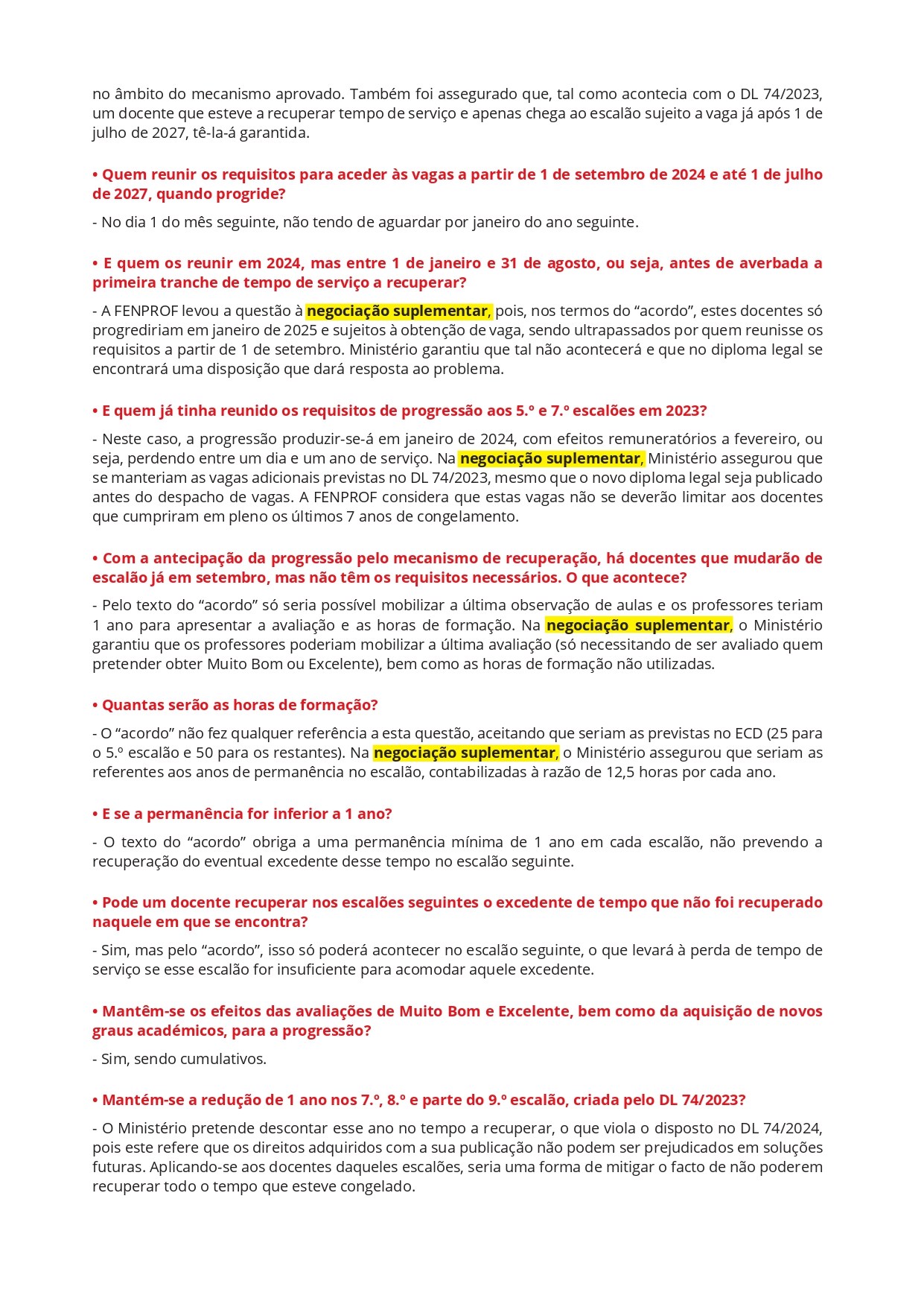 Em 6 de junho, a FENPROF reuniu com o Ministério da Educação, Ciência e Investigação (MECI), no âmbito do processo de negociação suplementar, que requereu. Dessa reunião resultaram esclarecimentos e soluções que são positivos para os professores, como adiante se explica.