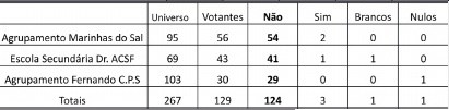 Tabela 2 - Resultados absolutos, encontrando-se na primeira coluna o total de professores por estabelecimento de ensino.