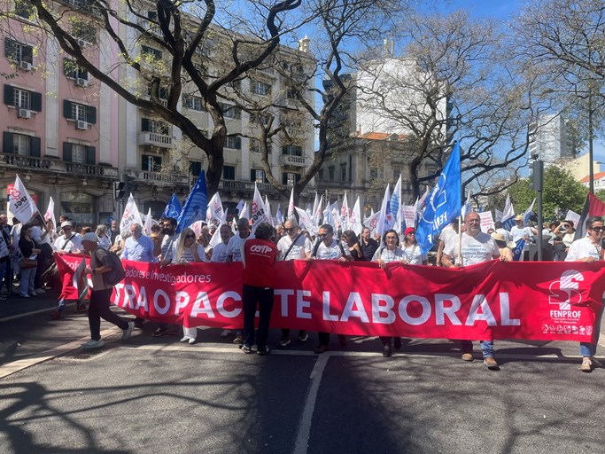 Mais de um milhar de professores, educadores e investigadores participaram na manifestação nacional contra o pacote laboral do governo, promovida pela CGTP-IN em 17 de abril, em Lisboa.