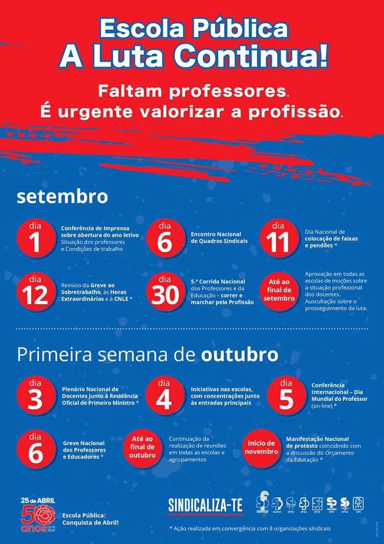 No passado dia 6 de setembro de 2023, os sindicatos da FENPROF reuniram os seus quadros sindicais (ativistas, delegados e dirigentes) n´A Voz do Operário, em Lisboa, para analisar o último ano de luta dos professores e educadores, mas, principalmente, para debater e preparar a ação reivindicativa do ano letivo que agora se inicia.