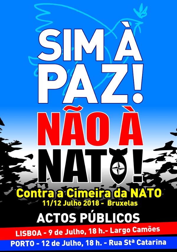 A campanha «Sim à Paz! Não à NATO!», promovida por várias organizações e movimentos sociais, com o objectivo de contestar os propósitos belicistas da Cimeira da NATO, de 11 e 12 de Julho, em Bruxelas, marcará presença em diversificados pontos do País, através da distribuição de jornais (veja aqui) e folhetos, onde se expressam as razões, assim como as exigências dos promotores, nomeadamente: a dissolução da NATO; o fim das guerras de agressão; desmantelamento do sistema anti-missil THAAD dos EUA/NATO e encerramento das bases militares em território estrangeiro; a abolição das armas nucleares e de outras armas de destruição massiva; o fim da corrida aos armamentos e o desarmamento geral, simultâneo e controlado; o apoio aos deslocados e refugiados, vítimas das guerras que a NATO promove e apoia; a assinatura e ratificação por Portugal do Tratado de Proibição de Armas Nucleares; o cumprimento, pelas autoridades portuguesas dos princípios consagrados na Constituição da República Portuguesa e na Carta das Nações Unidas, de respeito pela soberania, independência, igualdade de direitos e resolução pacífica dos conflitos entre os Estados.