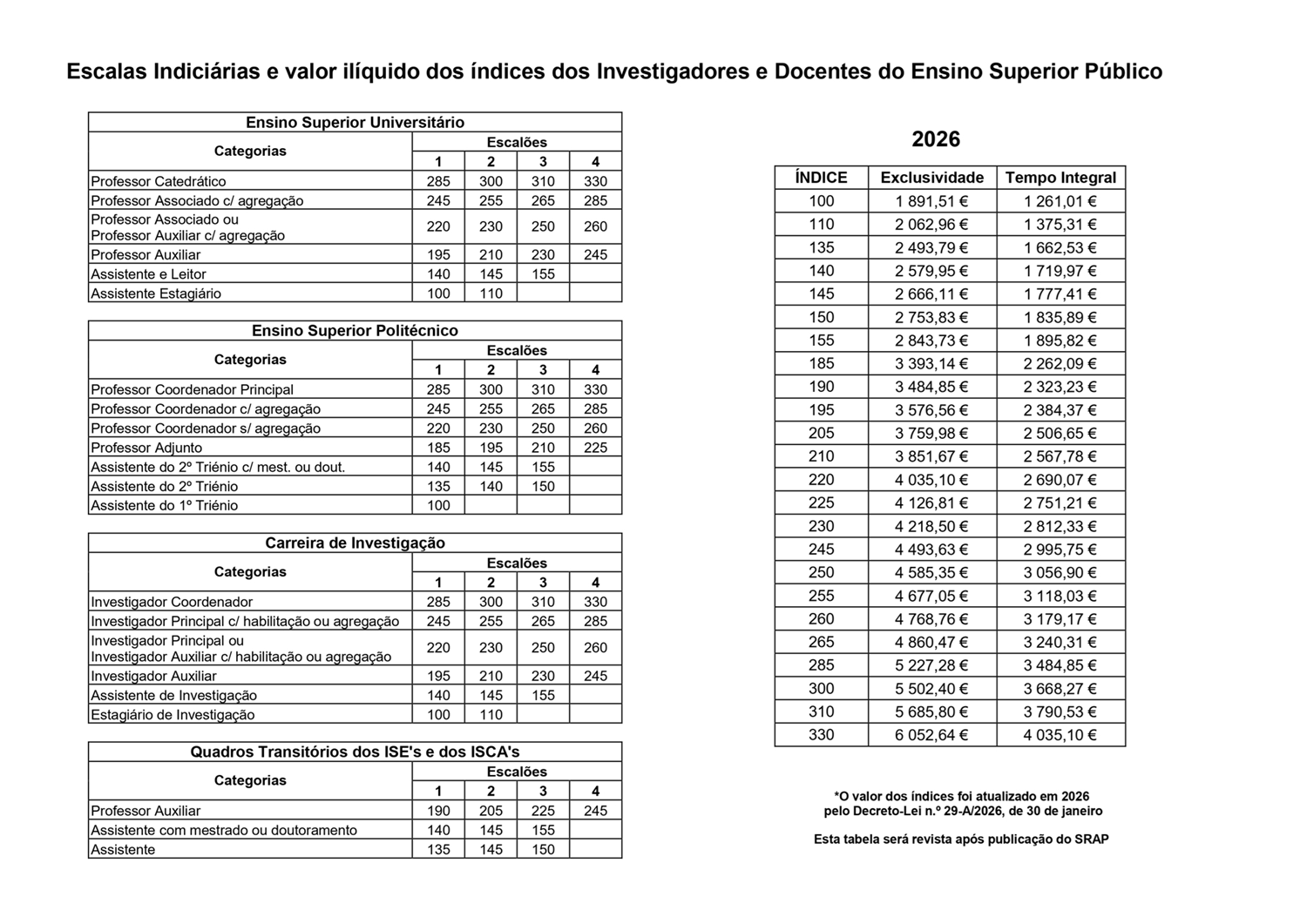 Artigo:Vencimento ilíquidos - 2026 Vencimentos, escalões e índices do Ensino Superior e Investigação