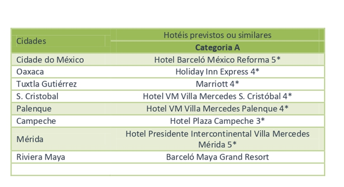 - **Revisão de preços: Os preços enviados estão sujeitos a possíveis revisões face a novas regras que possam surgir, relativas a visitas, entradas, condições de segurança, que afetem este itinerário.