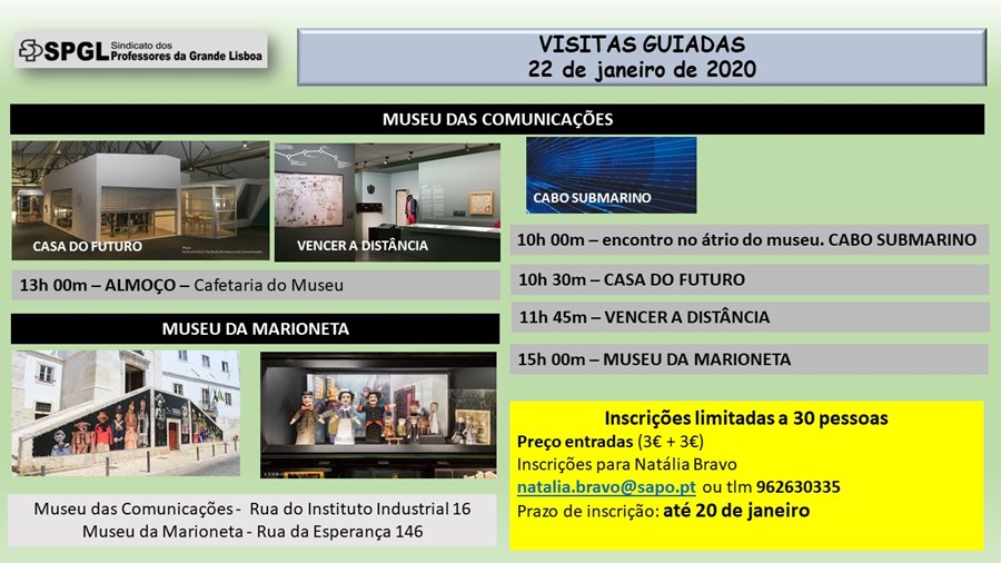 No próximo dia 22 vamos visitar o Museu das Comunicações e o Museu da Marioneta onde teremos visitas guiadas.